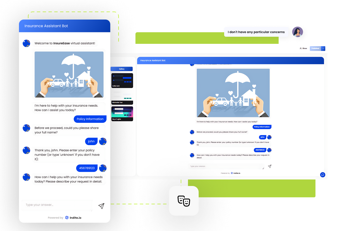Enhance customer interactions with Indite.io’s AI Agent for Insurance to automate policy inquiries, claims processing, and customer support to deliver a seamless and efficient insurance experience.