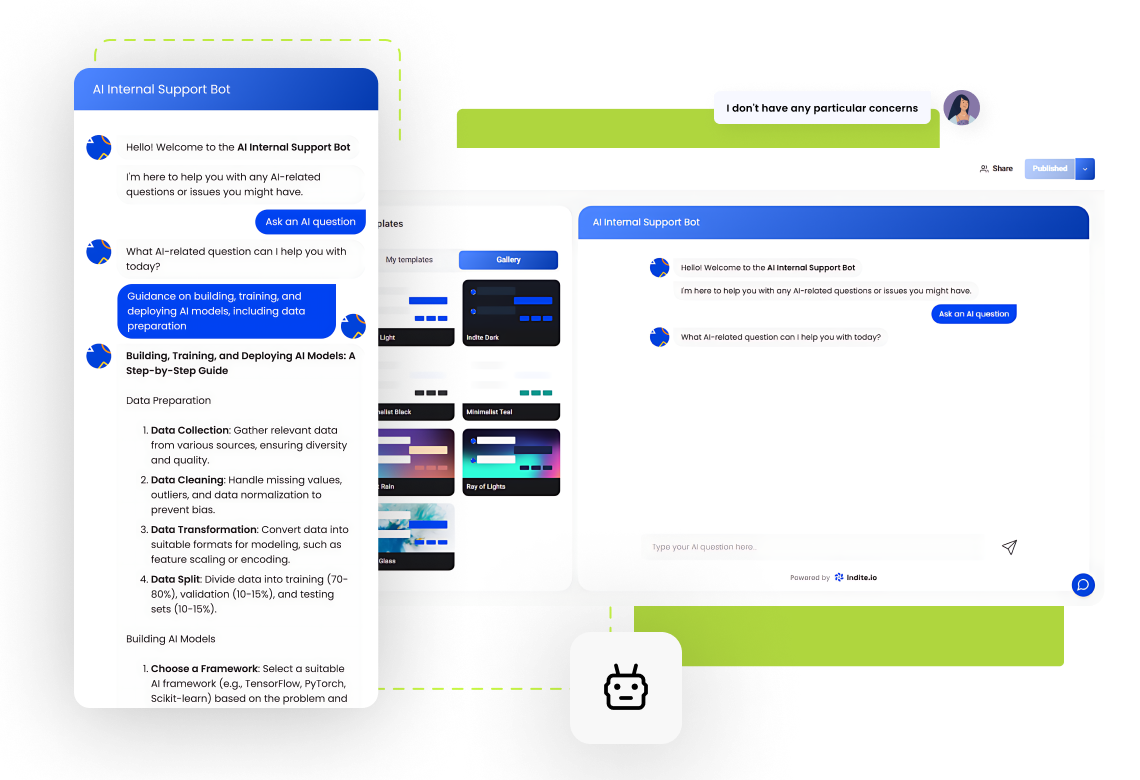 Empower your workforce with real-time AI-driven assistance. Indite.io’s AI Agents handle internal queries, from IT troubleshooting to HR requests, reducing dependency on manual support.