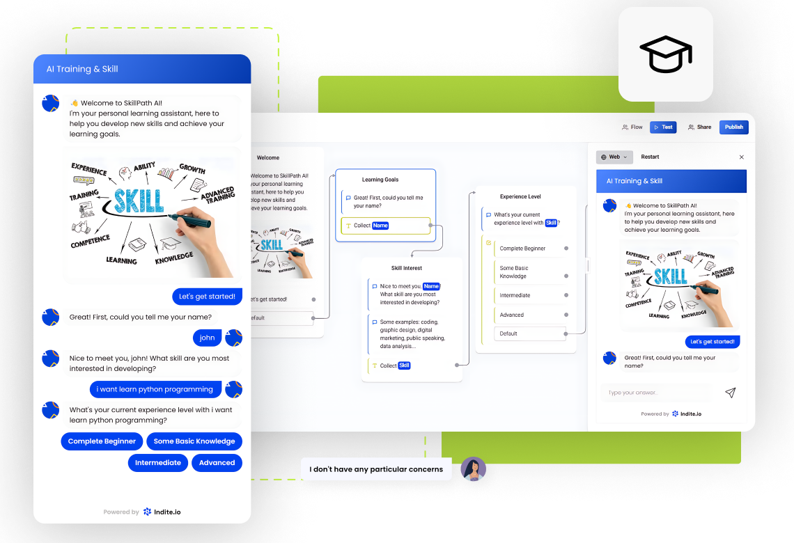 Deliver Personalized Learning, Automated Training, and Real-Time Skill Development Empower learners with Indite.io’s AI Agent for Training & Skill Development to automate training programs, provide real-time guidance, and personalize learning paths to improve skill development and engagement.